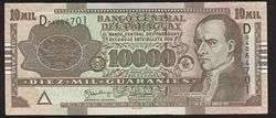 BILLETES MUNDIALES - PARAGUAY - PARAGUAY [P224b] 10.000 Guaranies 2005. R.Francia. Serie D. Impreso De La Rue. UNC