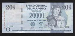 BILLETES MUNDIALES - PARAGUAY - PARAGUAY [P230] 20.000 Guaranies 2007. Mujer Paraguaya. Imp . Crane Currency. UNC