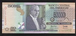 BILLETES MUNDIALES - PARAGUAY - PARAGUAY [P232] 50.000 Guaranies 2007.Muusico Agustin Barrios. Rev: guitarra. UNC
