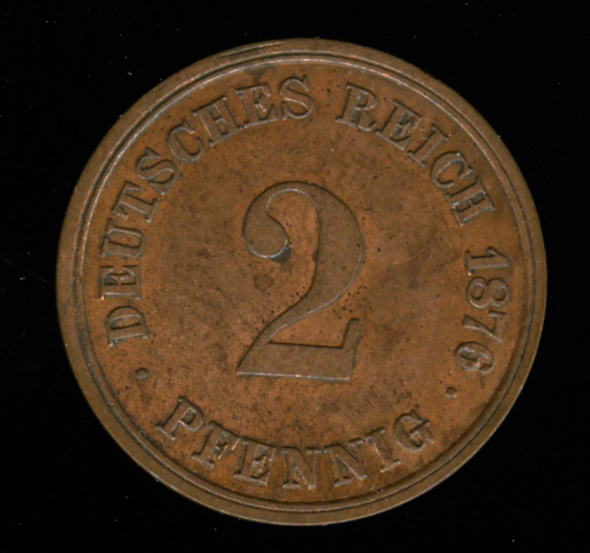 MONEDAS MUNDIALES - ALEMANIA - Alemania 1876 D 2 Pfennig [Cobre].VF+