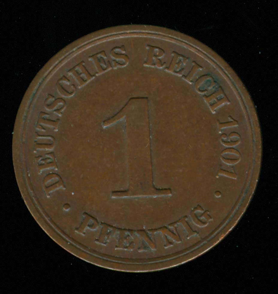 MONEDAS MUNDIALES - ALEMANIA - Alemania 1901 F 1 Pfennig [Cobre].VF