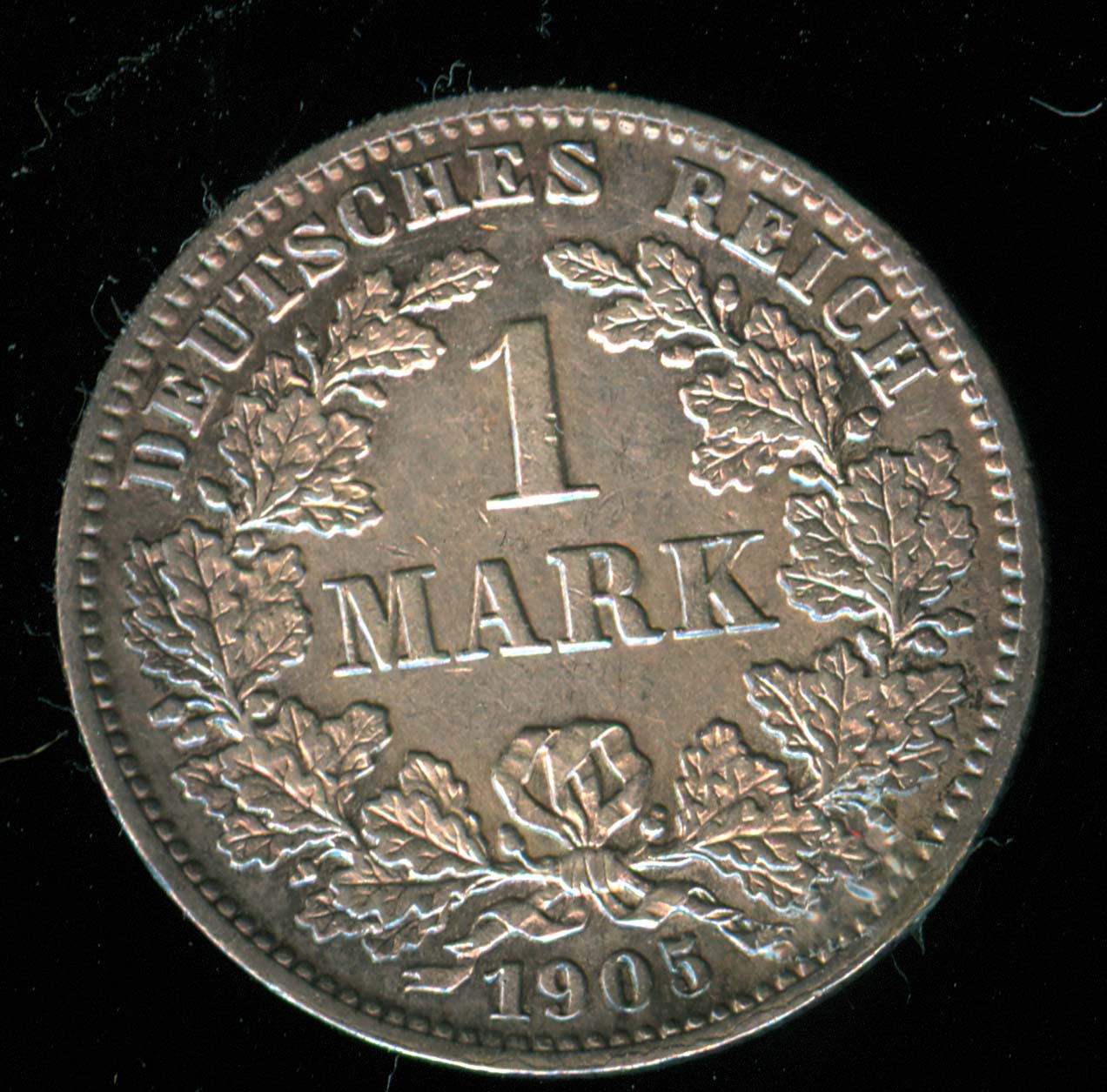 MONEDAS MUNDIALES - ALEMANIA - Alemania 1905 J 1 Marco [Plata 5,6gr].XF