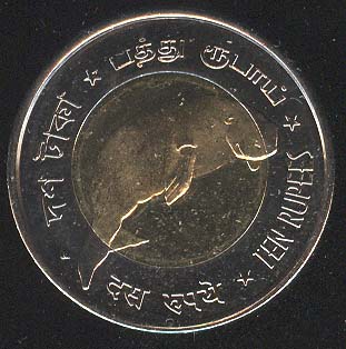 Monedas Bimetalicas - Series - BIMETALICAS - Andaman y Nicobar 2011 10 Rupias. Manati (Bimetalica Aro Niquel centro Bronce) UNC