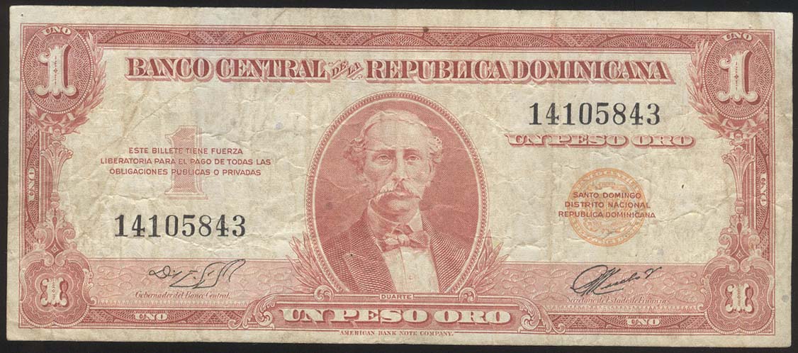 BILLETES MUNDIALES - DOMINICANA REPUBLICA - Dominicana Republica [P 91] 1 Peso (1962) VF (Muy Bueno)