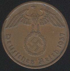 MONEDAS MUNDIALES - ALEMANIA - Alemania 1937 F 2 pfenig. Aguila c/ Esvastica [ Cobre] VF